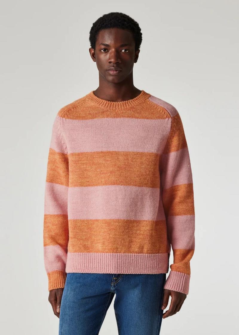Paul Smith Knitwear | Mens Pink And Orange Barstripe Wool Sweater Pink and Orange