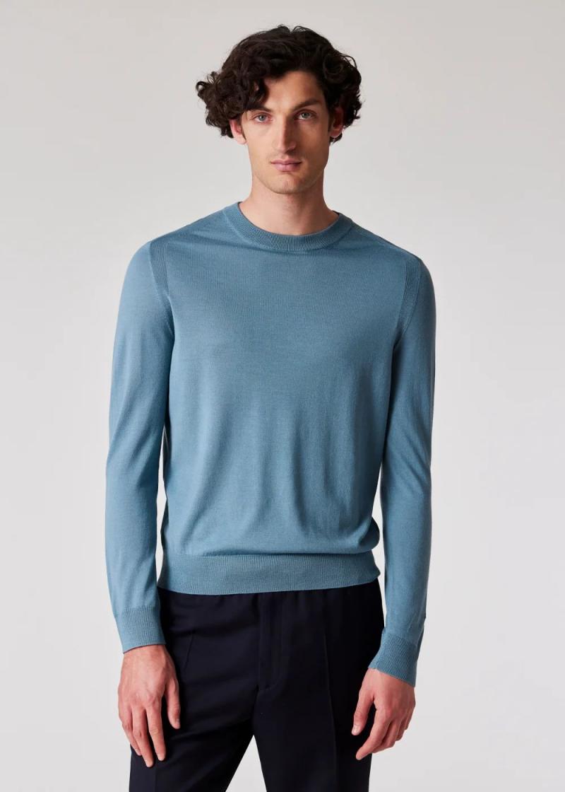 Paul Smith Knitwear | Mens Stone Blue Washable Merino Wool Sweater Stone Blue