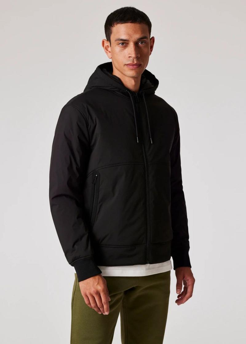 Paul Smith Coats & Jackets | Mens Black Mixed Media Hooded Jacket Black
