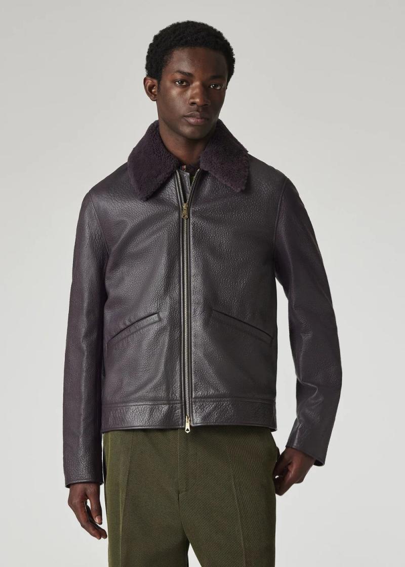 Paul Smith Coats & Jackets | Mens Dark Purple Grained Leather Jacket Dark Purple