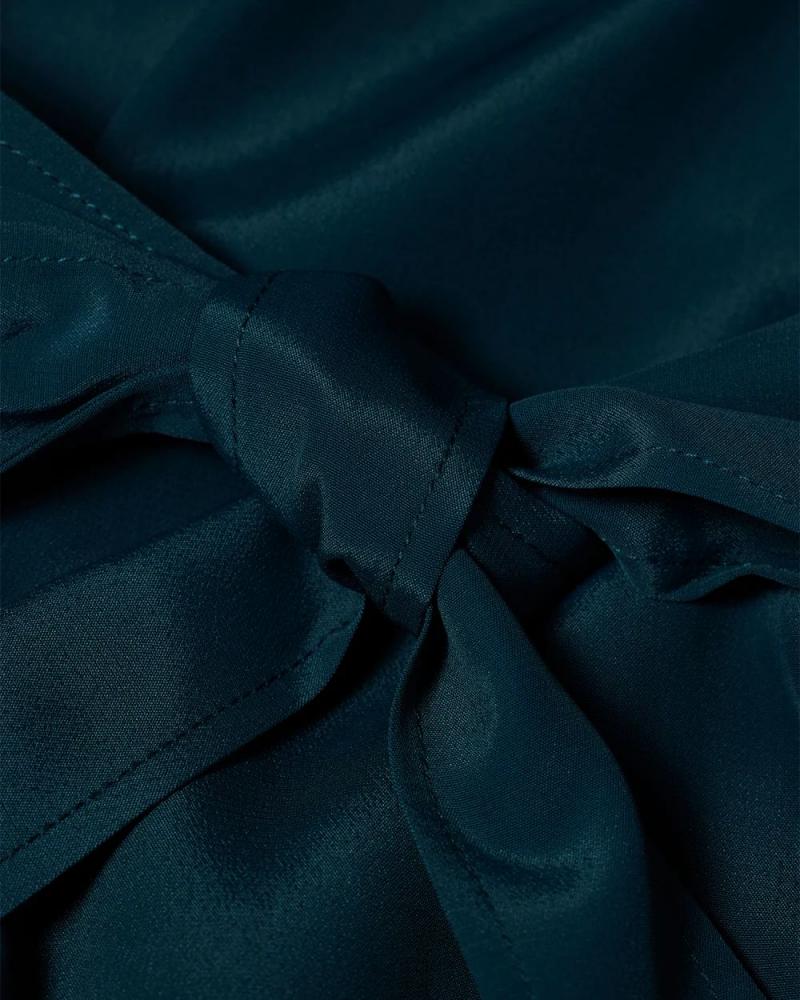 Made in Portugal from a premium silk-blend, this teal shirt dress is a timeless classic that will see you through many seasons to come. Cut for a midi length, this dress is complete with gathered shoulders, pleat cuffs, and an extra voluminous skirt for a feminine touch. Details include tonal buttons throughout and a long tie waistband for a double wrap styling option. Expertly finished with a ‘Swirl’ trim throughout the design for a synonymous branded touch.