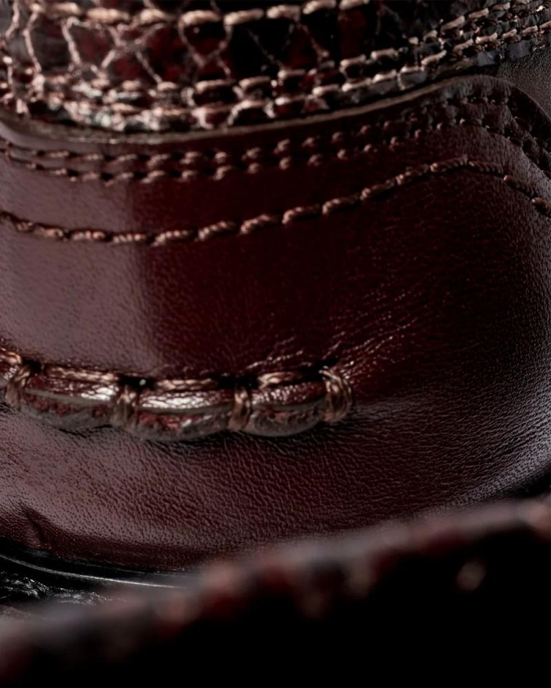 Made in Portugal from premium leather uppers, these brown ‘Toluca’ loafers feature embossed faux-snake leather trims – for an added twist. Ideal for both casual and formal occasions, these shoes are finished with classic beefroll stitching and cut-out saddle detail.