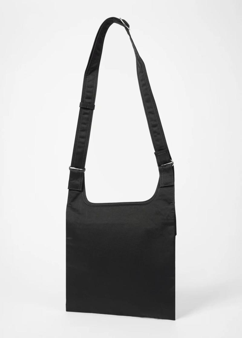 This black cross-body satchel is made from a recycled-nylon blend and can be worn either cross body or as a belt. Featuring a mag-dot flap closure, this bag is finished with a contrast lining and internal zip pocket.