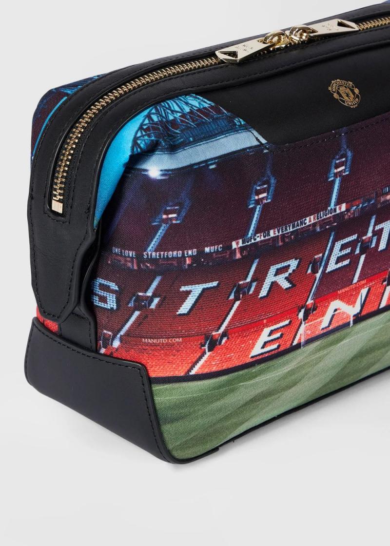 Made from recycled polyester, this wash bag features a photo print of the ‘Stretford End’ at Old Trafford created as part of the ongoing partnership between Paul Smith & Manchester United. The wash bag features leather trim detailing, a tie-shaped zip opening, and a press-stud fasten-down at each end. Complete with two mesh internal pockets and a large slip pocket, this wash bag is ideal for storing all your essentials when traveling.